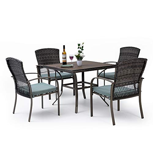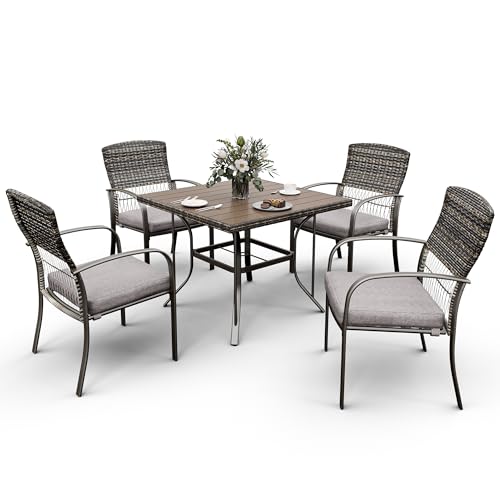 The Pamapic 5-Piece Patio Dining Set is perfect for outdoor meals. With all-weather rattan and a wood table top, it’s both stylish and durable. The removable cushions add comfort, making it ideal for garden gatherings.