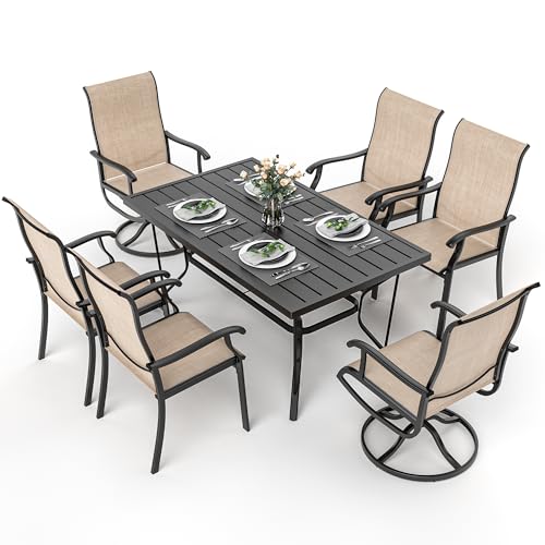 Turn your backyard into a dining oasis with this 7-piece outdoor dining set. Featuring two swivel chairs and four regular ones, this set is perfect for garden parties or poolside lounging. The beige color adds a touch of elegance to any outdoor space.