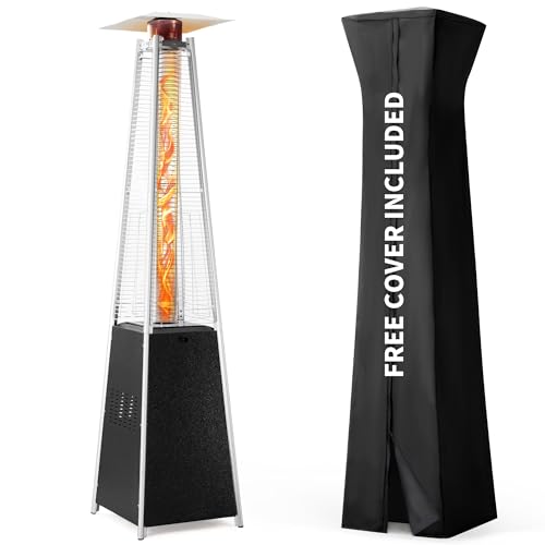 Bring a touch of elegance to your patio with this pyramid flame heater. Its hammered bronze finish and quartz glass tube create a stunning visual, while the 48,000 BTU output keeps you cozy. Plus, it comes with wheels for easy movement!