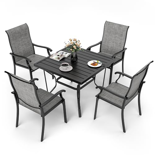 This 5-piece patio set is your ticket to outdoor dining bliss! With a square plastic-wood table and four comfy textilene chairs, it’s perfect for garden brunches or evening dinners. The charcoal finish adds a modern touch to any space.