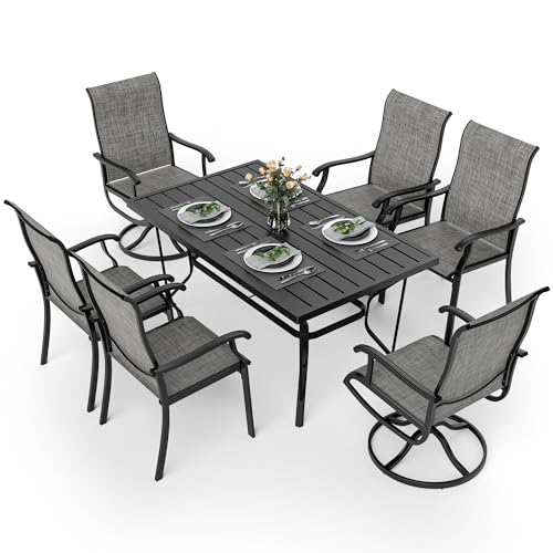 Enjoy meals under the sun with this 7-piece outdoor dining set. Featuring swivel chairs and a sturdy table, it’s perfect for garden, backyard, or poolside gatherings. The charcoal finish adds a sleek touch to any outdoor dining experience.