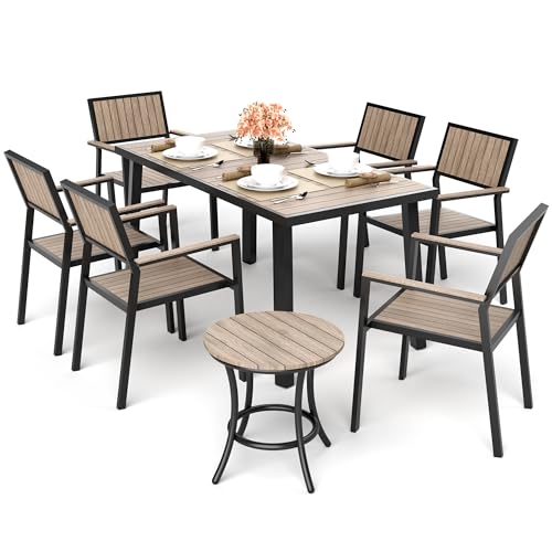Host the ultimate outdoor dinner party with the Pamapic 8-Piece Patio Dining Set. Featuring a plastic-wood table top and stackable chairs, this set is perfect for garden gatherings or poolside meals. Enjoy alfresco dining like never before!
