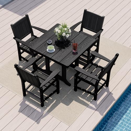 The Pamapic 5-piece outdoor dining set is your ticket to stylish alfresco meals. With oversized chairs and a wood grain table, it’s perfect for garden parties or quiet dinners. The all-weather design ensures durability and elegance, rain or shine.
