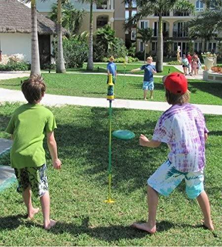 The reviews say: “We purchased this game set with the anticipation that we would be spending a lot of time at home during the pandemic and we were wanting to play something new. This game is a fun family game and would be very entertaining for a party or family get-together. It can be challenging in that the players need good aim, and you really have to have quick reflexes to catch the bottle or frisbee. Doing this all with one hand adds even more complexity. We recommend having a drink in hand to encourage one-handed play. Overall, we would recommend this game as it is a lot of fun and it has been one of our favourites to play over the summer.”