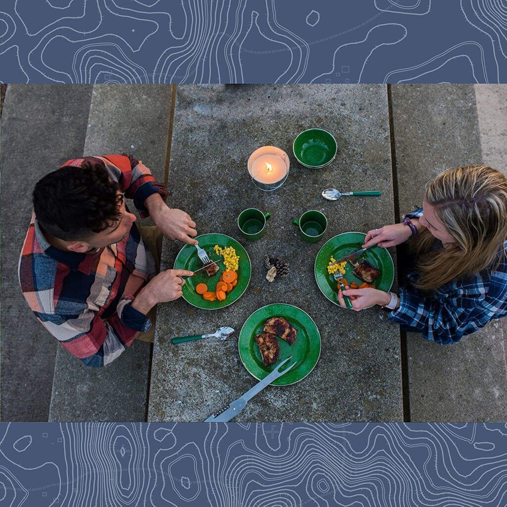 You’ll also want to invest in some camping dishes to make sure your good dishes stay happily in the kitchen where they belong. This set comes with plates, bowls, mugs, and utensils, so you’re set for any meal.